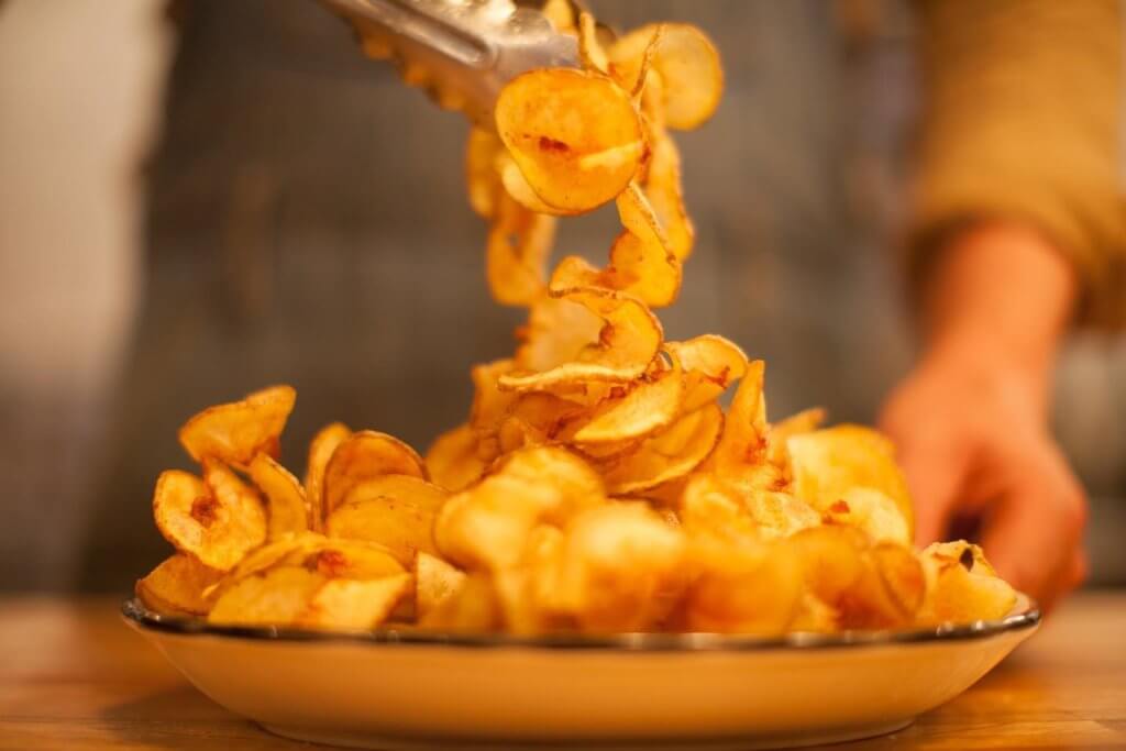 店名にもなっている看板メニュー・リボンフライは螺旋状に長く繋がった揚げたてのフライドポテト。サクッとふわっとしている独特の食感で人気メニュー。