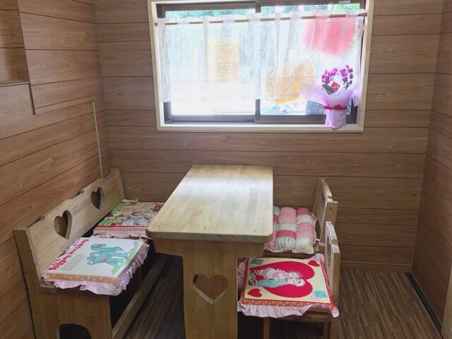 入口手前にある屋内テラス席で愛犬と一緒に過ごすことが出来ます。