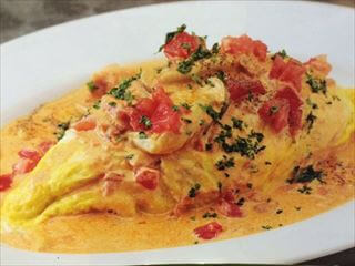 トマトソース&クリームチーズソースにパルミジャーノレジャーノチーズをたっぷり入れて煮込んだオリジナルソースがかかったエミリアソースがけオムライス や日替わりライスカフェプレートなども人気。