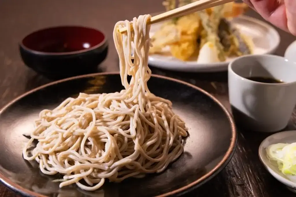 こだわりの手打ち蕎麦:蟻巣石の石臼で手打ち「世界遺産」白神山地の超軟水の天然水でこねた本格蕎麦。