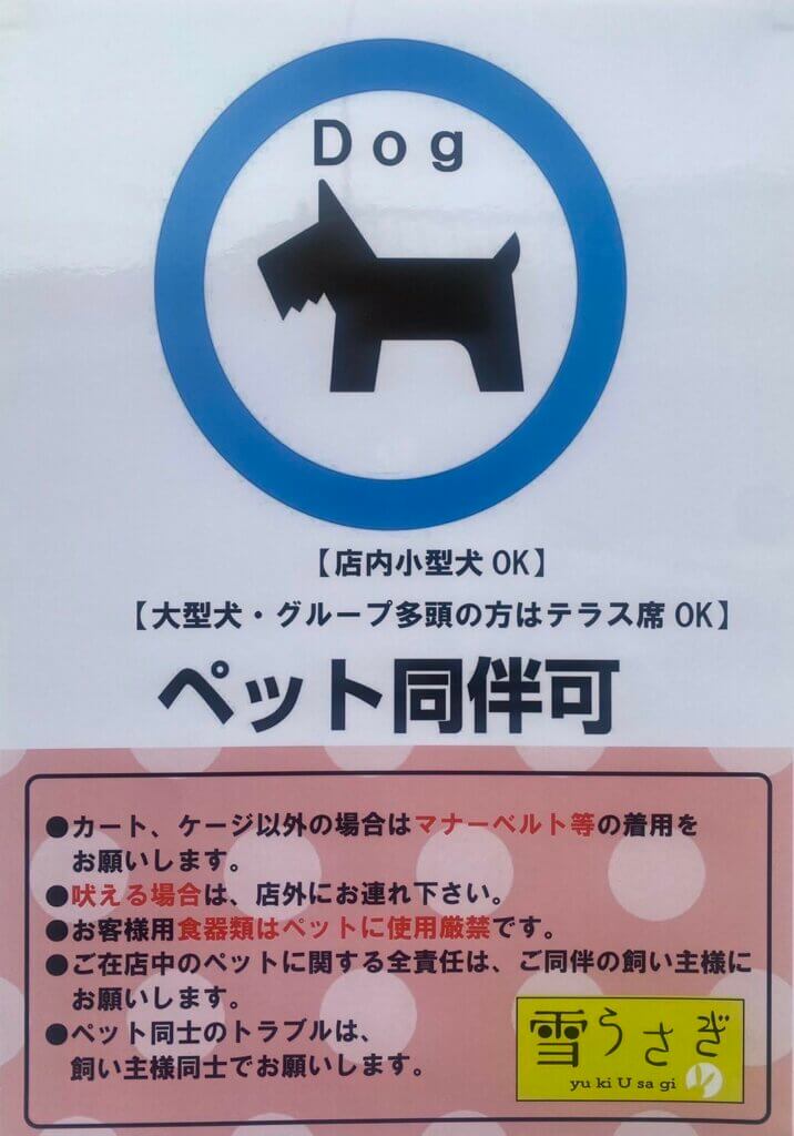 ワンちゃん店内OKです。愛犬同伴可能エリアがあり・ソファー、イス、膝の上に乗せない。